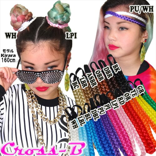 【カラー】 BL (ブルー) / DBL (ダークブルー) / GR (グリーン) / LB (ライトブルー) LPI(ライトピンク)/ OR (オレンジ) / PI (ピンク) / PU (パープル) RD (レッド) / WH (ホワイト) / YE (イエロー) / YG (イエローグリーン) / BK (ブラック) / DBR (ダークブラウン) / ASBR (アッシュブラウン) / LBR (ライトブラウン) / OBR (オレンジブラウン) / BC (ブリーチ) 全長 幅 サイズ 約 46cm〜 約 1.3cm 【素材】 三つ編み:アクリル繊維 (未伸縮) 黒ゴム部分:ポリエステル (伸縮) ※写真と実物の色が、液晶の具合によって若干異なる事もございます。